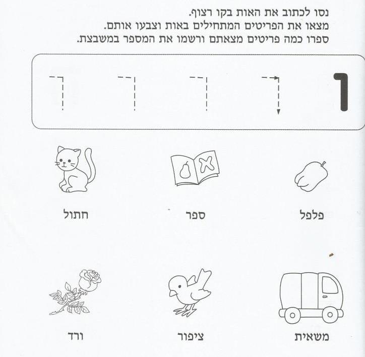 Попытайтесь (נסו) написать (לכתוב) букву (אות) сплошной (רצוף) линией (ב+קו).Найдите (מצאו) предметы (פריטים), которые начинаются (ה+מתחילים) с буквы (ב+אות) и раскрасьте (צבעו) их (אותם).